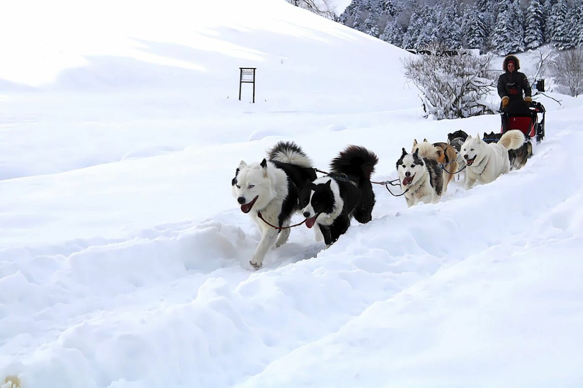Que vous soyez installés dans un kart ou dans un traîneau, vous serez tractés par un attelage de 10 à 13 chiens nordiques, à travers la forêt. Ce baptême est l'occasion de découvrir l'étonnante force de nos chiens de traîneau, mais aussi leur gentillesse. Plongez dans l'aventure , sentez la vitesse et laissez-vous porter et emporter par l'énergie débordante de nos compagnons polaires.