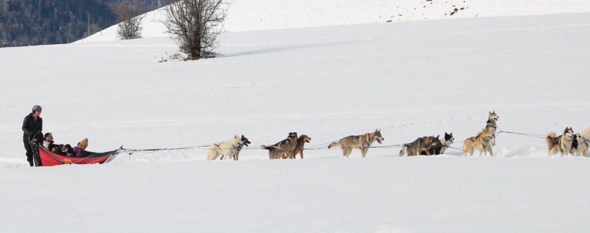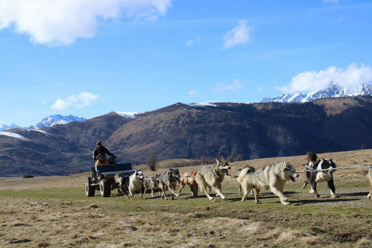 Au pied du col d'Aubisque, installé à 1600m d'altitude sur le plateau de Bézou à Gourette, nous vous proposons un baptême en grand attelage avec nos chiens nordiques.