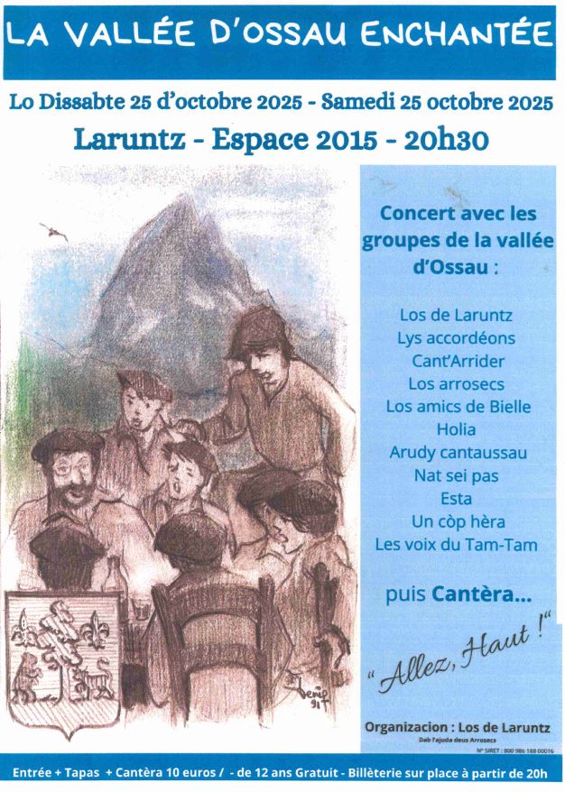 Concert avec les groupes de la Vallée : Los de Laruntz, Lys accordéons, Haut e baish, Los arrosecs, Los amics de Bielle, Holia, Arudy cantaussau, Nat sei pas, Doun dena, Polycarpe...