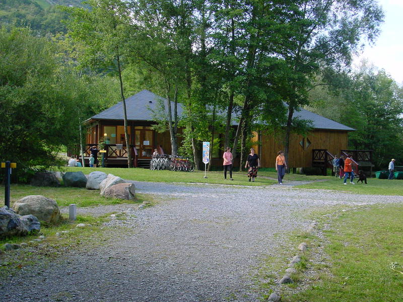 Prendre à gauche de celle-ci le chemin de halage qui remonte le long du gave d’Ossau. Passer devant l’aire de piquenique et continuer jusqu’à atteindre une barrière, au niveau du parking annexe « Arriu Mage ». La saligue est un terme local désignant l’environnement naturel proche d’un «gave» (nom des rivières de montagne dans les Pyrénées), cette zone humide dont la végétation est souvent constituée de saules et d’aulnes. Elle abrite un milieu faunistique et floristique très riche. Quitter le gave et tourner à droite en longeant le théâtre de verdure où sont organisés de nombreux spectacles en été. Tourner à droite en longeant le théâtre de verdure où sont organisés de nombreux spectacles en été.