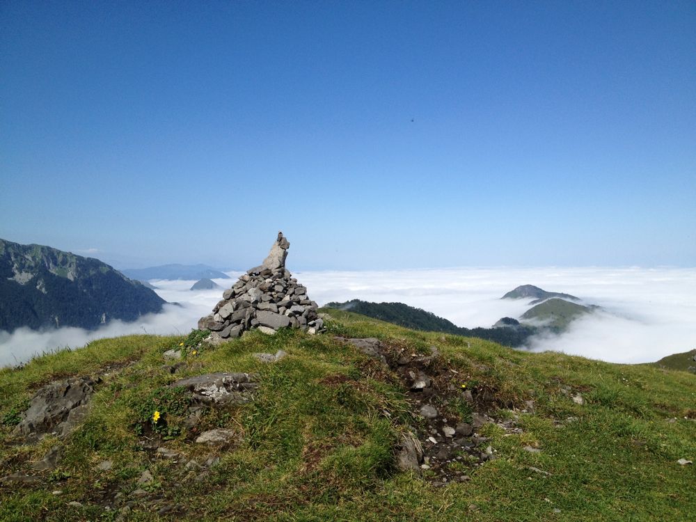 0h55 À gauche en haut du vallon, traverser puis passer une petite crête. 1h Monter à droite puis vers la gauche en direction du sommet. 1h15 Au niveau d’une antécime, tirer vers la gauche en descendant puis remonter entre des rochers pour rejoindre le sommet en vue sur la droite.
