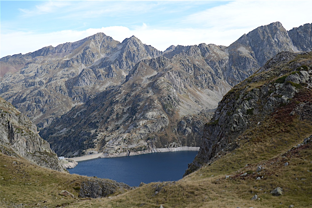 2h30 Laisser le sentier qui part à droite vers le lac d’Arrius et poursuivre tout droit celui qui amorce la descente vers le lac d’Artouste, visible en contrebas. Passer un petit couloir un peu raide et continuer à descendre jusqu’à un grand replat herbeux que l’on traverse pour rejoindre peu après une intersection (panneau indicateur).3h00 Laisser le sentier qui descend au lac et poursuivre à droite en remontant la pente par des lacets bien marqués jusqu’à une perche de mesure pour la nivologie au sommet de la côte. Ensuite, la marche devient plus facile et l’on arrive bientôt en vue du refuge. Après une courte descente et une fois contourné un petit lac par la droite, le sentier remonte sous le barrage. Traverser sous le mur pour gagner le refuge.