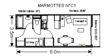 - Vue pistes, 26m² , expo S.E, placard à ski, chauffage électrique. Entrée coin montagne 2 lits sup. en 80, sdb lavabo, baignoire, sèche cheveux. WC indépendants. Séjour canapé lit 2 places, TV. Cuisine: plaque vitro 4 feux, four, frigo, MO, LV, cafetière électrique, grille pain, bouilloire, robot.