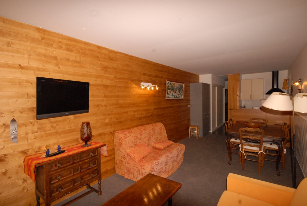 Appartement 3 pièces catégorie confort pour 6 pers, 4°étage, vue pistes, 48m² , expo Sud, chauffage collectif. Chambre1: 1 lit 140. Chambre2: 2 lits superposés. Sdb lavabo, baignoire et WC indépendants. Séjour canapé lit 2 places, TV. Cuisine: plaque vitro 4 feux, four, micro-ondes, frigo, lave-vaisselle, cafetière électrique, grille pain.