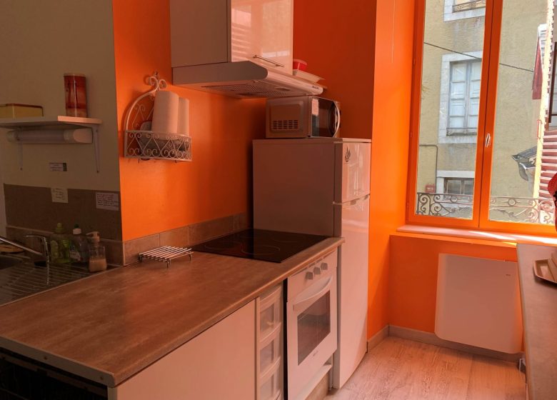 - Situé dans le haut du village des Eaux-Bonnes, au départ de nombreuses balades ombragées, de la forêt suspendue, à 8 kms de la station de ski de Gourette et à 12 km du mythique Col d'Aubisque pour les cyclos. Appartement spacieux et lumineux, décoré avec soin et particulièrement équipé pour l’accueil des familles, matériel enfant et jeux à disposition de petits et grands.L'appartement est situé au 2d étage de la résidence et il est composé d'une pièce de vie avec cuisine ouverte et de 2 chambres. Au RDC de la résidence, vous pouvez profiter de l'espace détente/sauna mis à disposition.Couchage : 1 chambre avec un lit de 160 x 200 et 1 lit superposé de deux couchages 90 x 190 - 1 chambre avec 1 lit en 140 x 190 - Couettes, oreillers à dispositionChauffage : ElectriqueSanitaires : Douche - Lavabo double vasques - Sèche-cheveux -WC séparéEquipements de l’Appartement : Cuisine avec : Plaque électrique 4 feux – Réfrigérateur avec partie congélateur – Four - Four micro-ondes – Lave-vaisselle - Cafetière filtre et Senseo - Grille-pain – Bouilloire –Appareil à raclette – Appareil à fondue – Crêpière – Mixeur plongeur – Chauffe biberonTélévision - TV Sat - Lecteur DVD – Livres et Jeux de société - WifiEquipements extérieurs : Stationnement gratuit à proximité du logement - Espace sauna-détente au RDC de la résidence avec accès compris dans le tarif de la location - Local sportif : ce local est équipé d’un râtelier à skis et d’un dispositif de rangement de vélos.