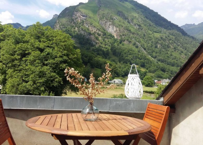Cet appartement situé au 2nd étage d'une maison locative, dans un quartier calme avec vue sur les montagnes, est idéal pour un séjour en famille. Vous appréciez l'espace cuisine et la terrasse avec vue sur les montagnes. Composé d'une cuisine fermée avec accès à la terrasse, 2 chambre et salle d'eau. Son salon, sous comble lui rend un espace cocooning.