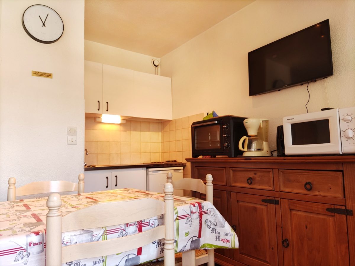 - Studio de 23m² pour 4 personnes. Sas d'entrée avec 2 lits superposés, penderie, tiroirs de rangement - salle de bain avec douche et WC. Pièce principale avec coin salon (canapé-lit pour couchage de deux adultes) - Téléviseur - Coin cuisine/kitchenette équipé... Parking à proximité. L'appartement dispose d'un balcon fermé façon loggia aménagé de 5 m².
