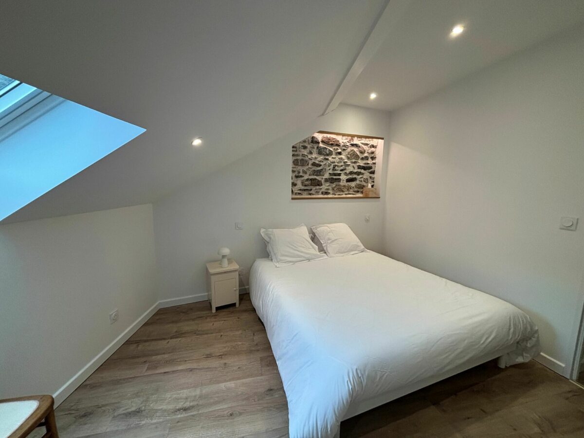 • Le gîte est réparti sur trois niveaux de vie. RDC se trouvent un coin nuit équipé d'un lit superposé, d'une banquette convertible ainsi que d'une salle d'eau. Au premier étage vous trouverez une vaste pièce de vie lumineuse avec cuisine équipée, salon et poêle à bois. Au deuxième étage se trouvent deux chambres confortables et une seconde salle d'eau. Le gîte dispose d'un espace extérieur privatif avec terrasse et jardin. Couchage : Au RDC : 1 Chambre : 2 Lits superposés en 90 et un convertible 1 placeAu 2d Etage : 1 Chambre : 1 lit en 180 - 1 Chambre : 1 lit en 180 Couettes et oreillers à dispositionChauffage : Electrique – Poêle à boisSanitaire : Au RDC : Douche- WC indépendant - A l'étage : Douche avec WC Sèche-cheveuxEquipements du Gîte : Cuisine équipée avec : Plaque de cuisson 4 feux vitro - Four – Four à micro-ondes – Réfrigérateur avec partie congélateur – Lave-vaisselle – Cafetières filtre - Grille-pain –Bouilloire – Appareils à raclette - Mixeur – Batteur électrique - Lave-linge - Sèche-lingeTélévision Equipements extérieur : jardin clos de 100 m² avec terrasse et salon de jardin - Barbecue Stationnement gratuit à proximitéPrestations : Lits faits à l’arrivée - Serviettes toilettes fourniesMatériel enfant disponible sur place : Chaise haute – Jeux de société enfants : Livres, légos et playmobilsLe prix de la location comprend : L’hébergement, les charges, les lits faits à l’arrivée, le linge de toiletteLe prix de la location ne comprend pas : Les frais de dossier (20€), la caution (500 €) restituée après état des lieux lors de votre départ, le bois de chauffage (1ière flambée offerte), le ménage en fin de séjour, la taxe de séjour