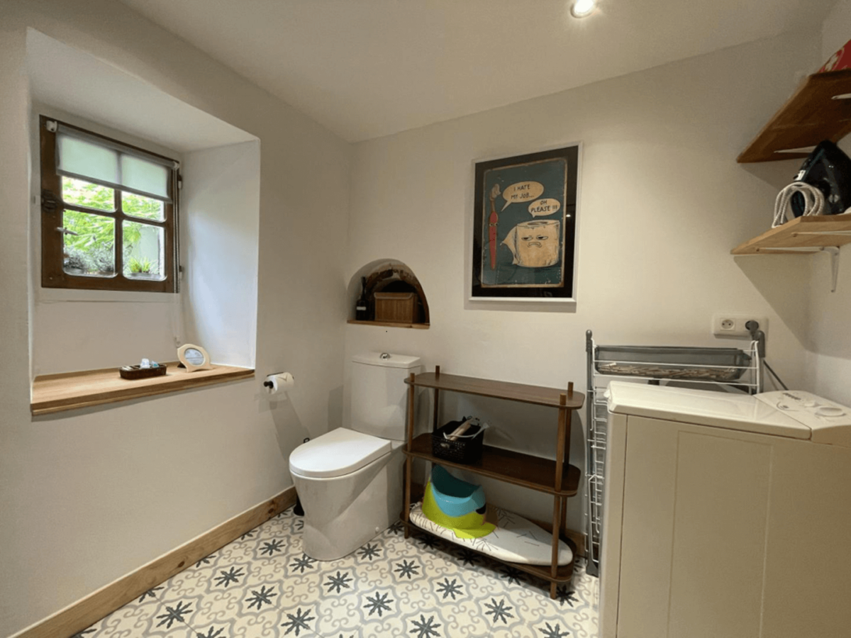 Sanitaire : Au RDC : 1 douche avec WC - Sèche-cheveux et fer à lisser – 1 WC à l’étage