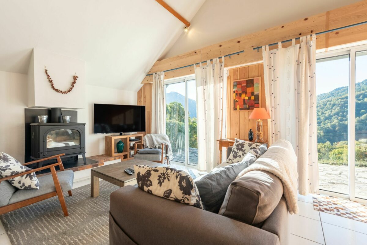 Cette agréable maison individuelle avec son jardin et ses terrasses pour l’été et son coin salon avec cheminée pour l’hiver est idéale pour un séjour en famille ou entre amis. Magnifique vue sur la Vallée d’Ossau.