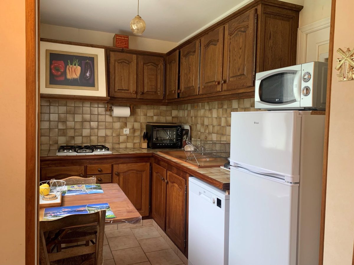 Equipements du Gîte : Cuisine avec Plaque 4 feux gaz – Mini-four électrique – Four micro-ondes - Réfrigérateur avec partie congélateur– Lave-vaisselle - Cafetière filtre et Senseo - Bouilloire - Grille-pain - Appareil à raclette et fondue