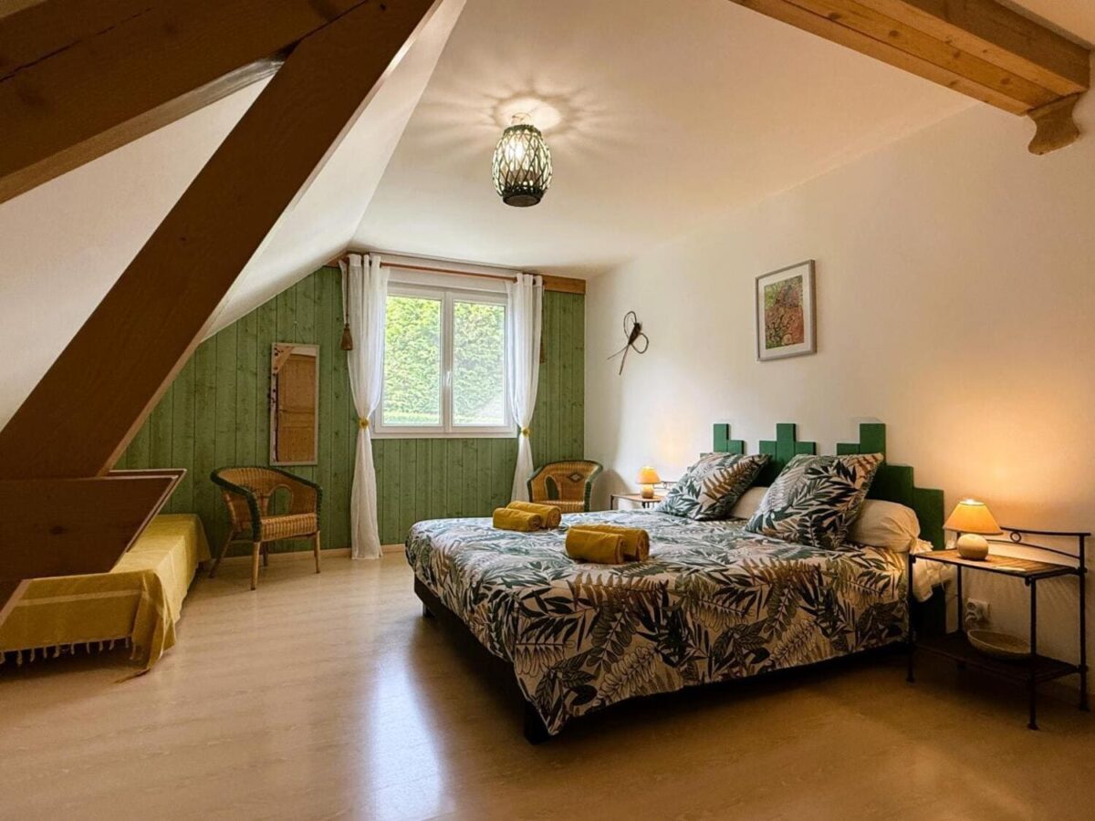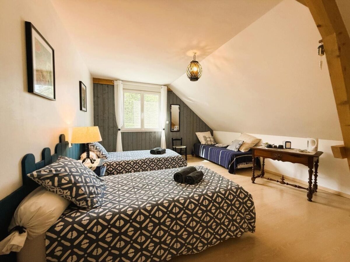 A l'étage de la maison 1 chambre pour 2 et 2 chambres pour 3.