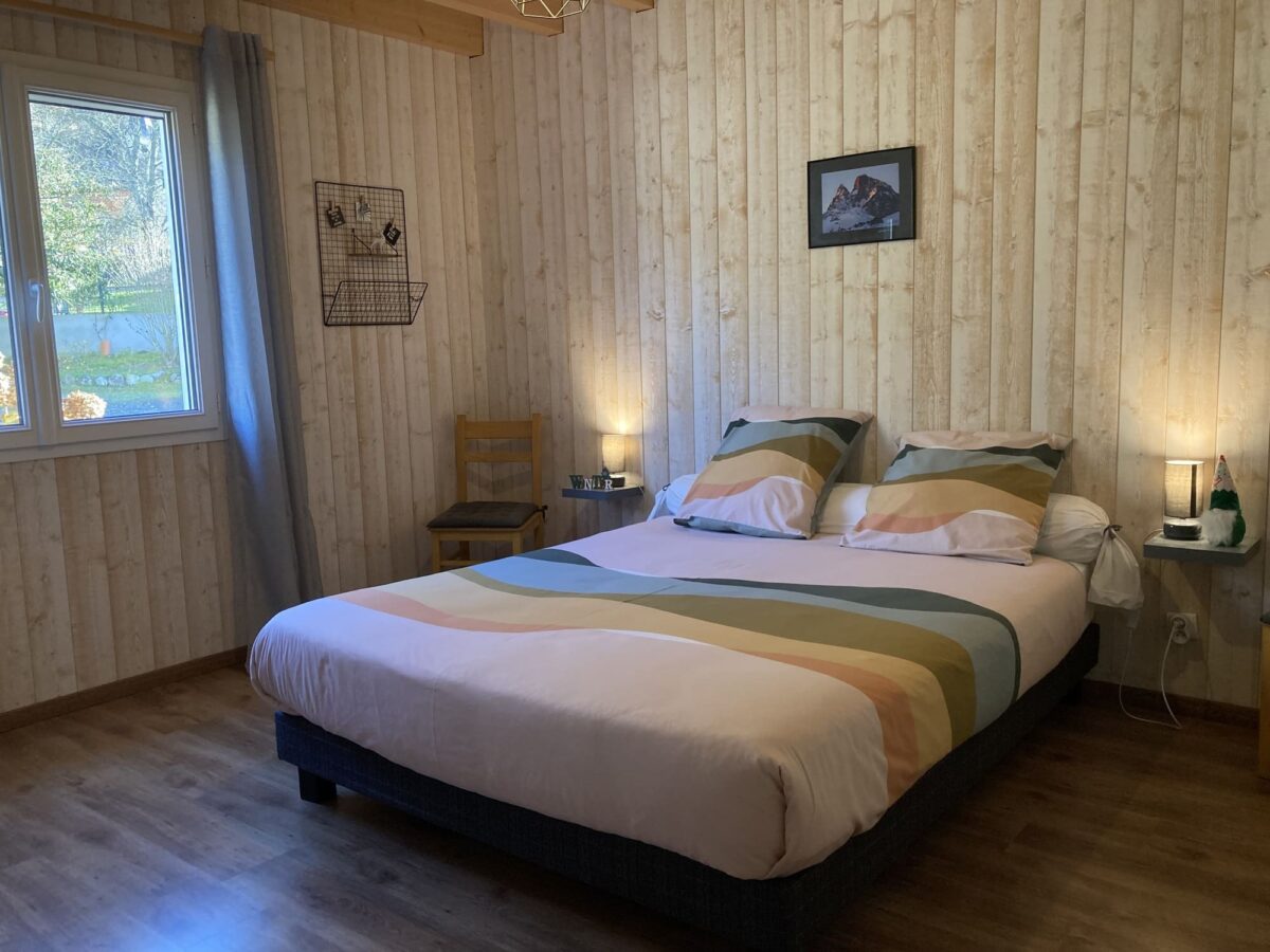 Cinq chambres confortables, avec sanitaires privatifs (salle d'eau avec douche italienne, vasque et wc séparés) vous attendent dans cette maison chaleureuse habillée de bois. Dans le séjour baigné de lumière ou dans le jardin, vous dégusterez les copieux petits-déjeuners de Pauline, avec un décor digne d'une carte postale face à vous : les Pyrénées vous entourent. Décoration harmonieuse et atmosphère reposante. Une kitchenette est mise à votre disposition.