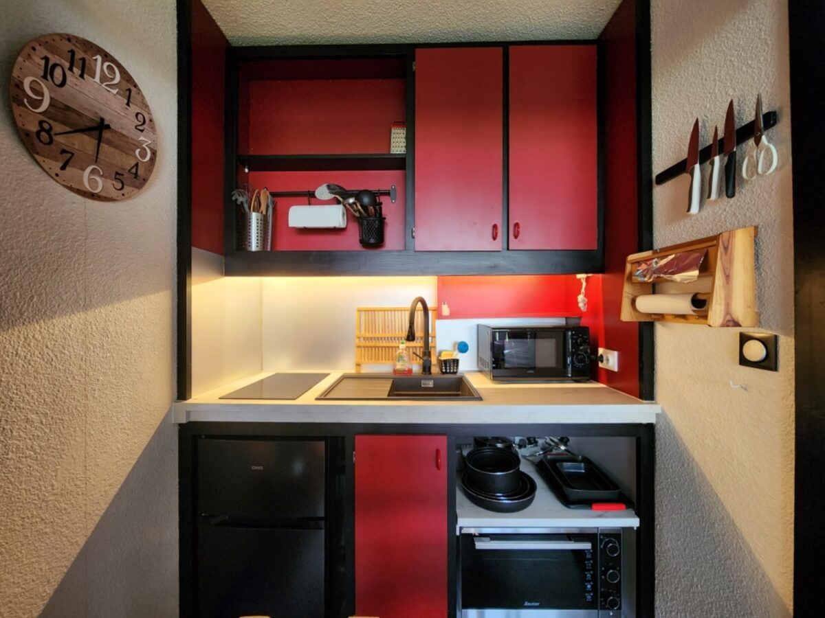 Petit studio bien équipé dans résidence, vue montagne et proche commerces.