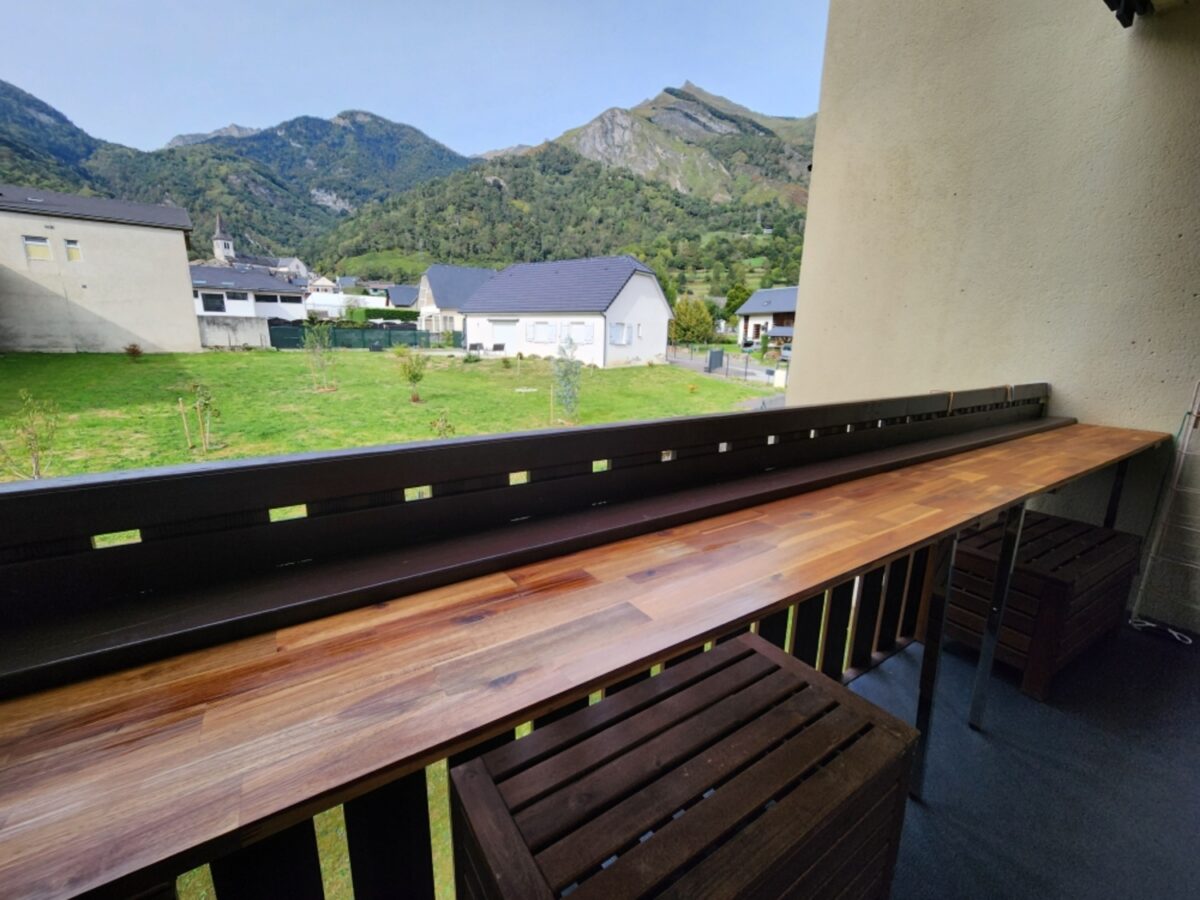 En Vallée d'Ossau, ce studio récemment rénové à Laruns, au 1er étage d'une résidence est situé au centre du village et proche des commerces et des services. Vous serez à 12 km de Gourette et 20 km d'Artouste et du territoire du Parc National des Pyrénées. Vous profiterez d' une piève principale avec balcon/terrasse et salon de jardin avec vue sur les Cinq Monts. Idéal pour un séjour en famille ou couple de randonneurs.